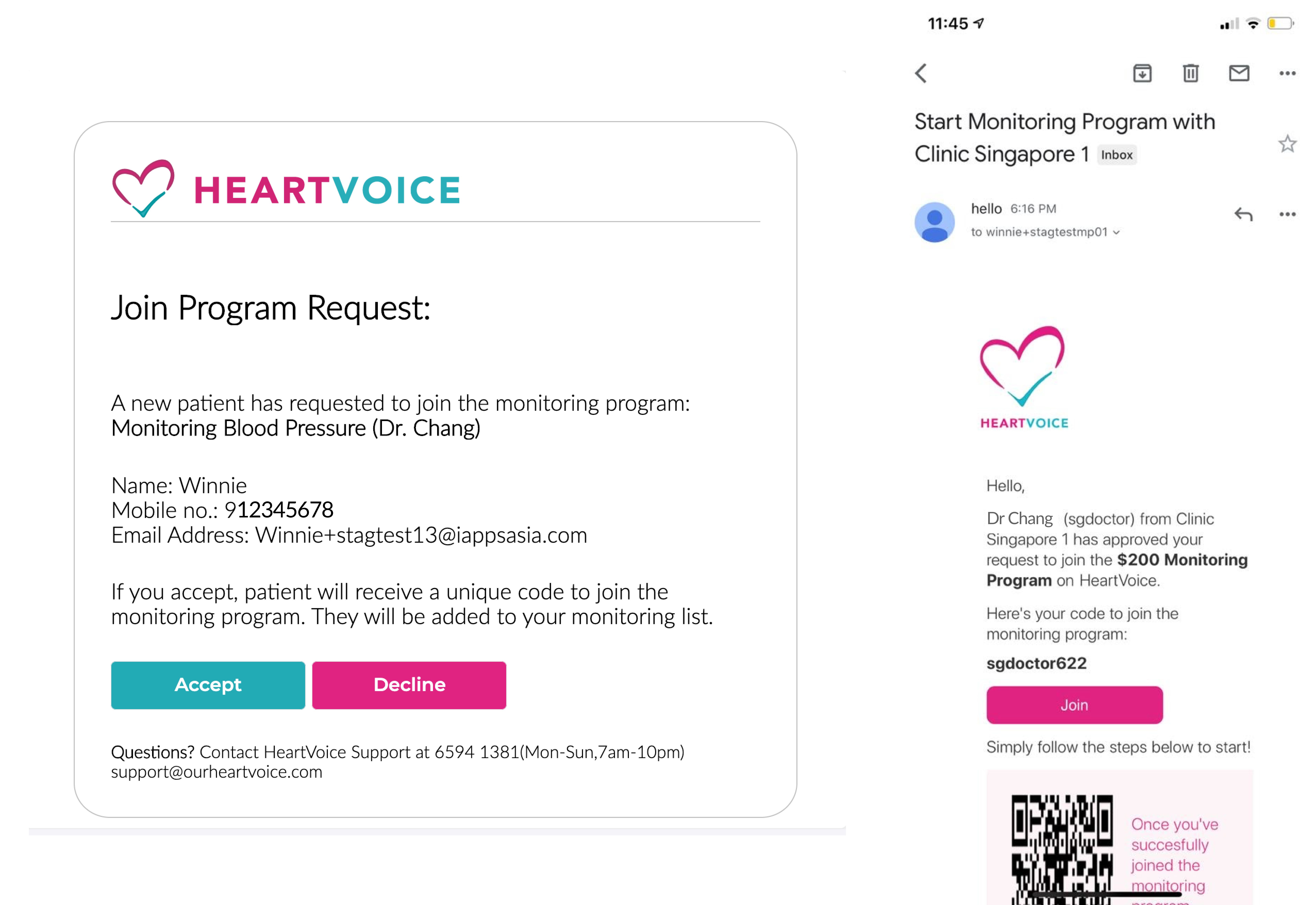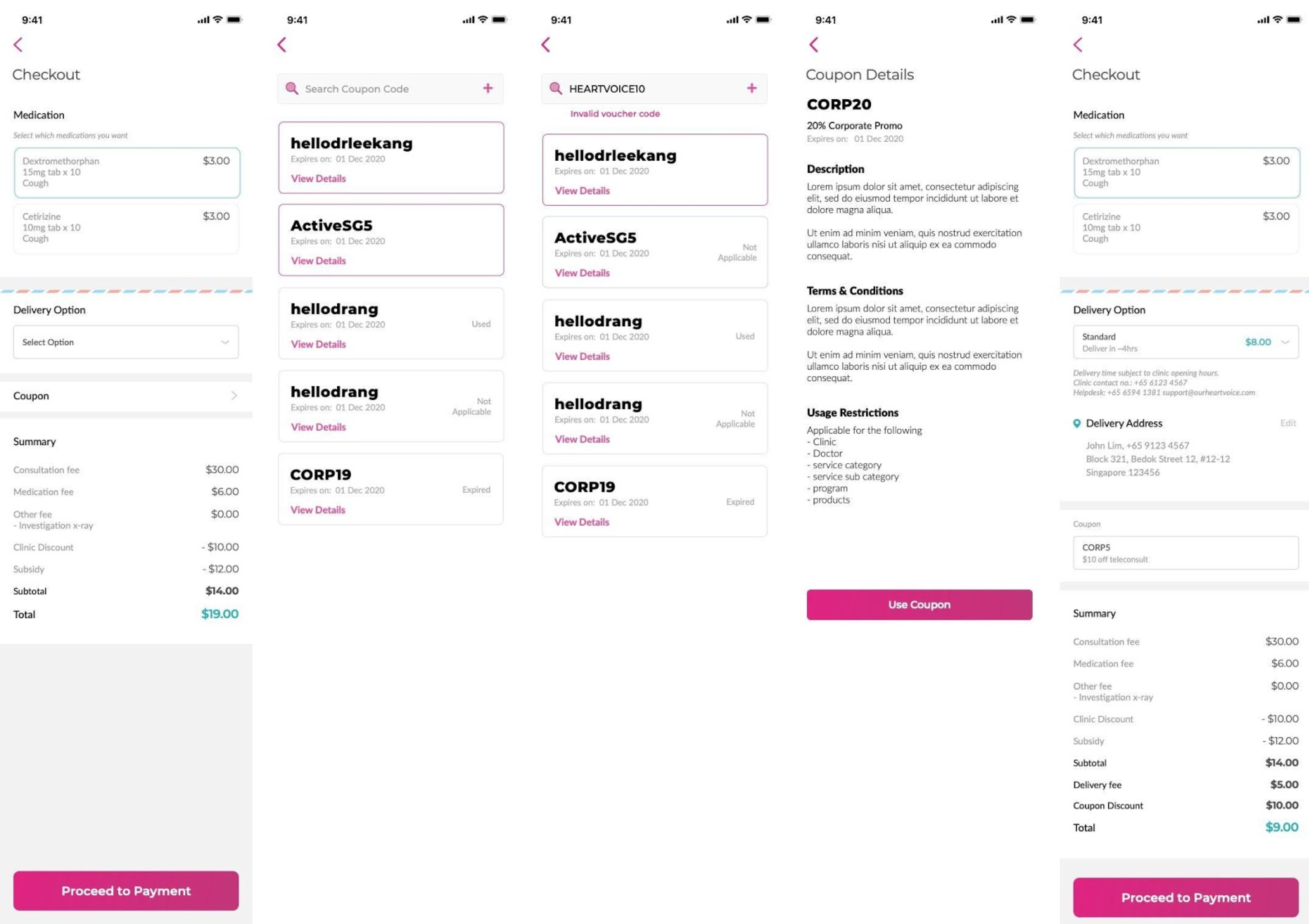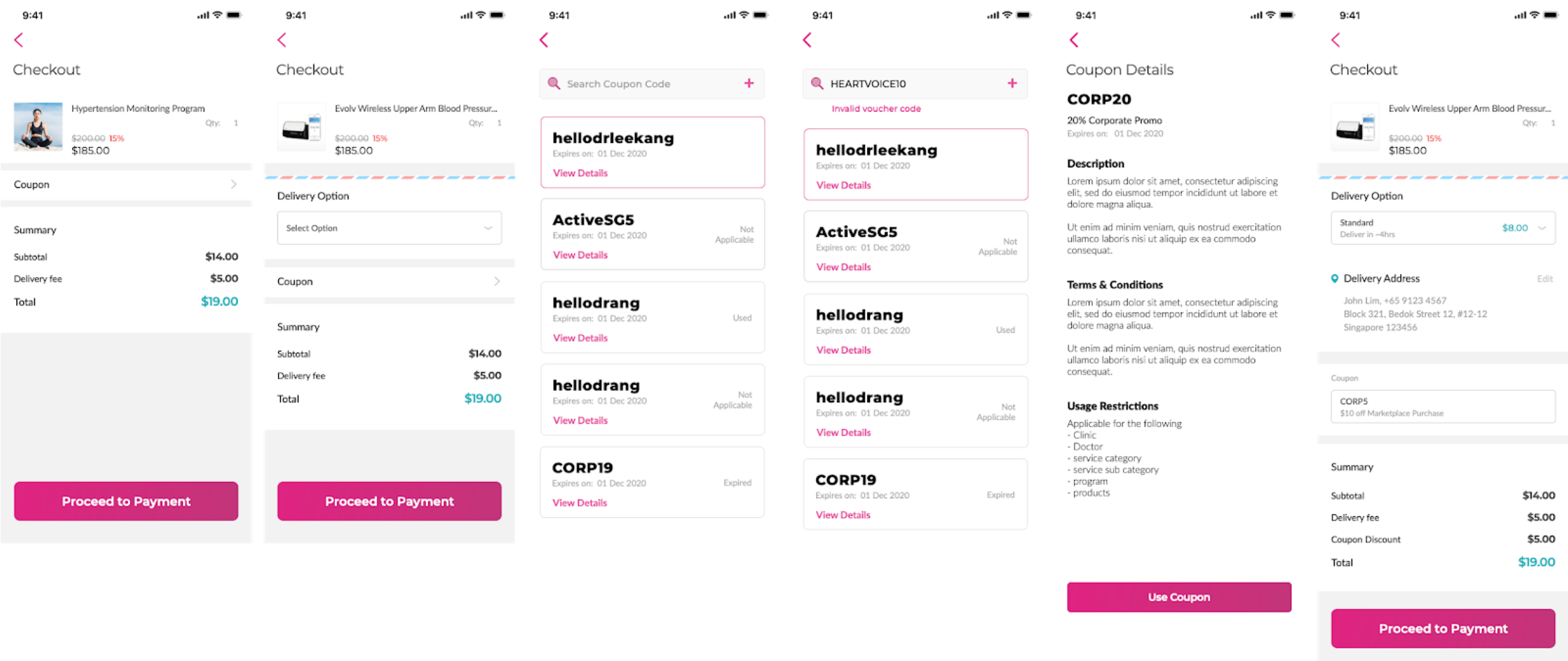A referral code is only usable when users use HeartVoice for the first time as referred by their providers. A coupon code is usable when users have already registered with HeartVoice and can use this coupon code at the marketplace or/and using telemedicine consult.