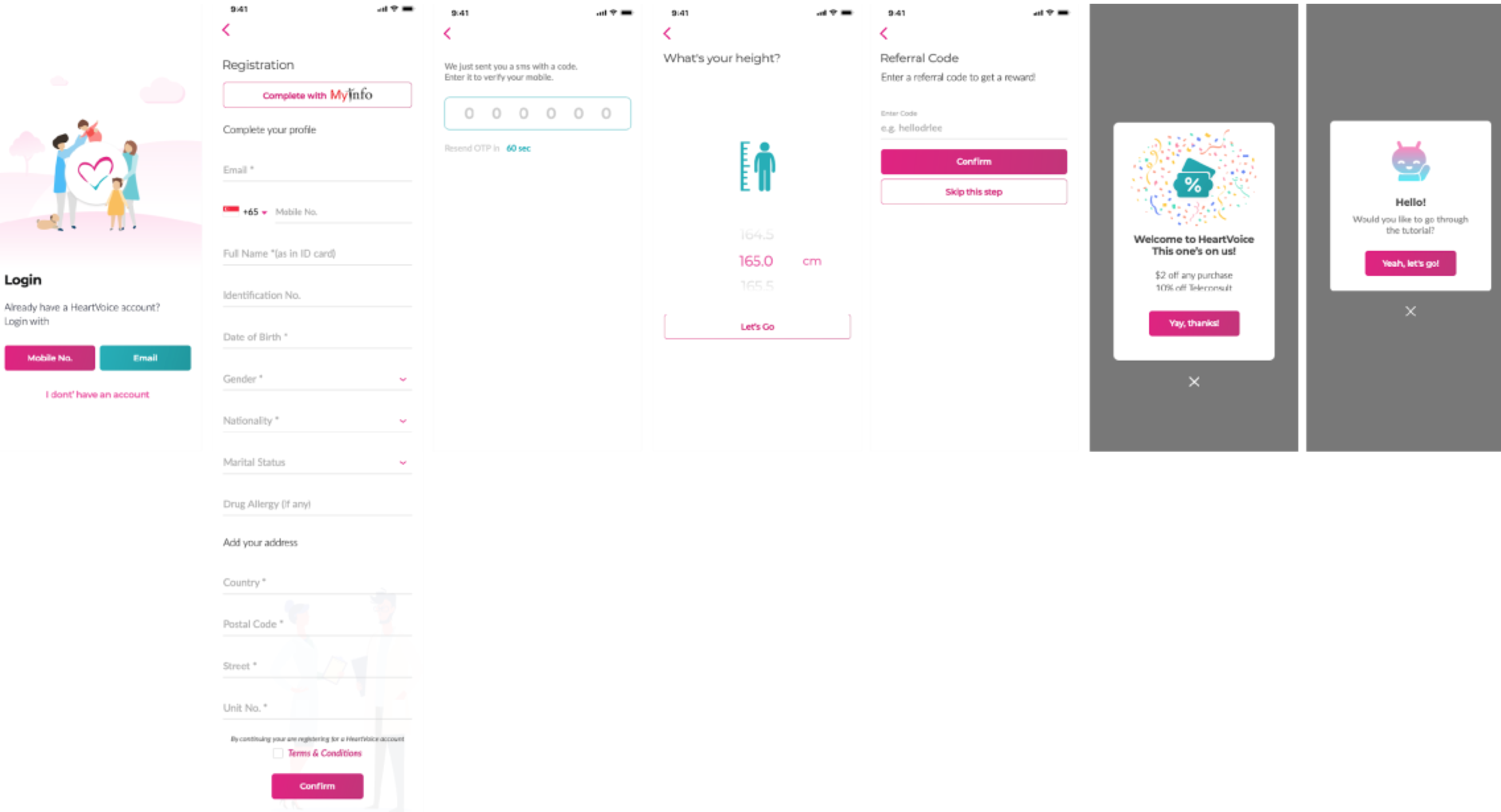 - Patient login with Sing Pass > verify > allow permission for info > info prefill into HV registration form