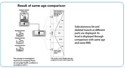 Understand body condition through comparison with same age & BMI, based on the proprietary benchmarks from Omron.